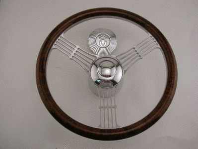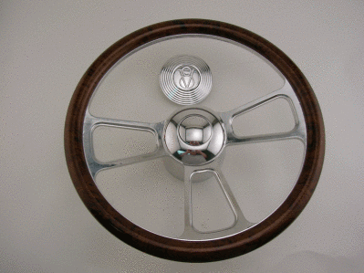| Polished Billett 3/4 wrap three spoke wheel with simulated woodgrain wrap - complete 265.00 |