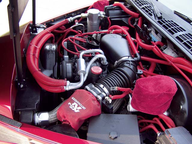 | The first thing to do was to add a little adjustability to the front end. Most people 'bag their trucks to get them to lay out, but they had to 'bag it to get the front of the truck higher off the ground for driving. They learned that lesson quickly after buying it and draggin' the fiberglass front end pulling into parking lots. This also let them set the front a little lower for shows and to tuck the 17-inch Boyd Coddington wheels in the front. The matching rear wheels, but in a 20-inch size, are one touch that sets this kit truck apart from the others, because these wheels have a huge lip and fill up the rear fenderwells. They left the rear suspension with a static drop because the rear wheels already tucked nicely. The stock S-10 Blazer 4.3L Vortec received a little extra power with the help of a K&N filter and dual Flowmaster mufflers and 3-inch piping. |