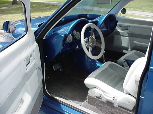 Other interior features include a custom dash with Dolphin gauges, Alpine AM/FM CD player, B&M quick shift, and banjo steering wheel