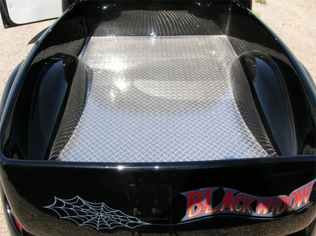 | The custom wood deck on this driver is protected from the elements by our optional tonneau cover. |